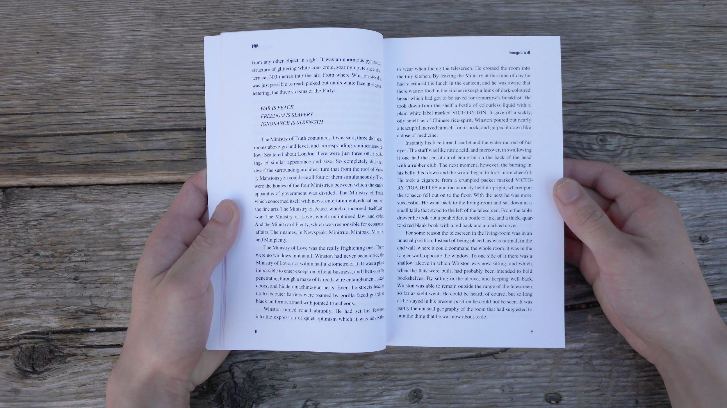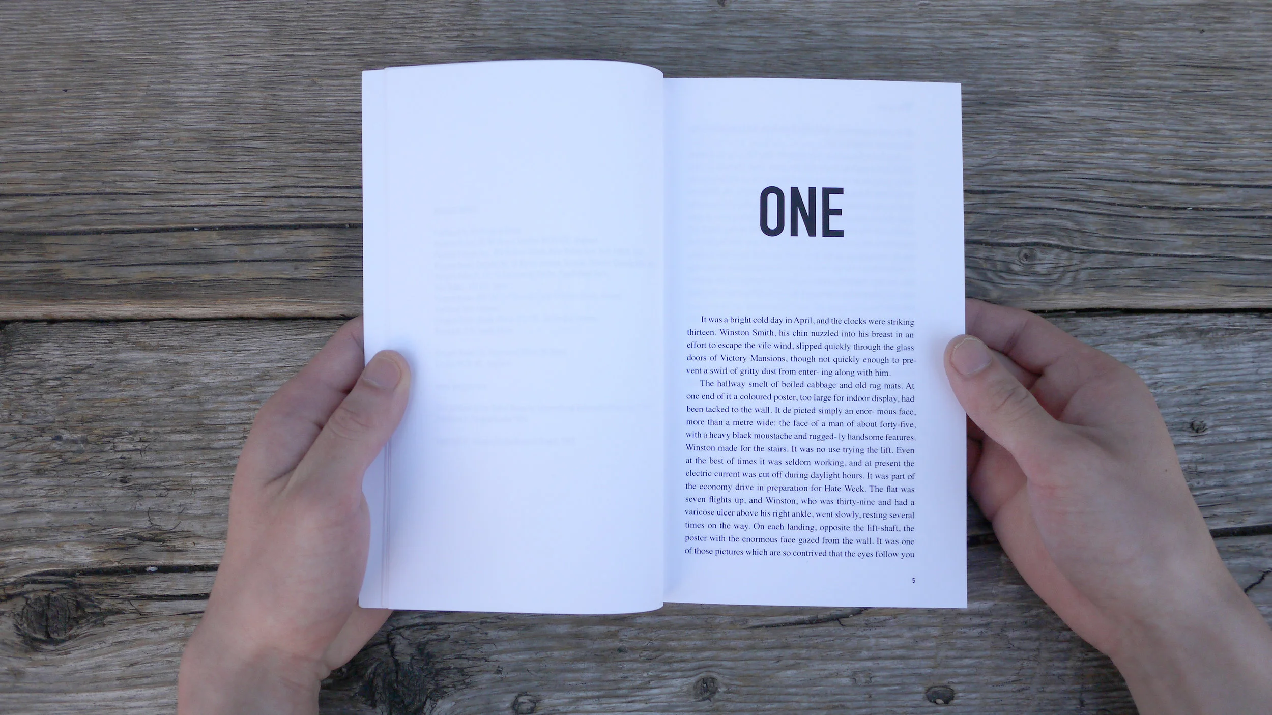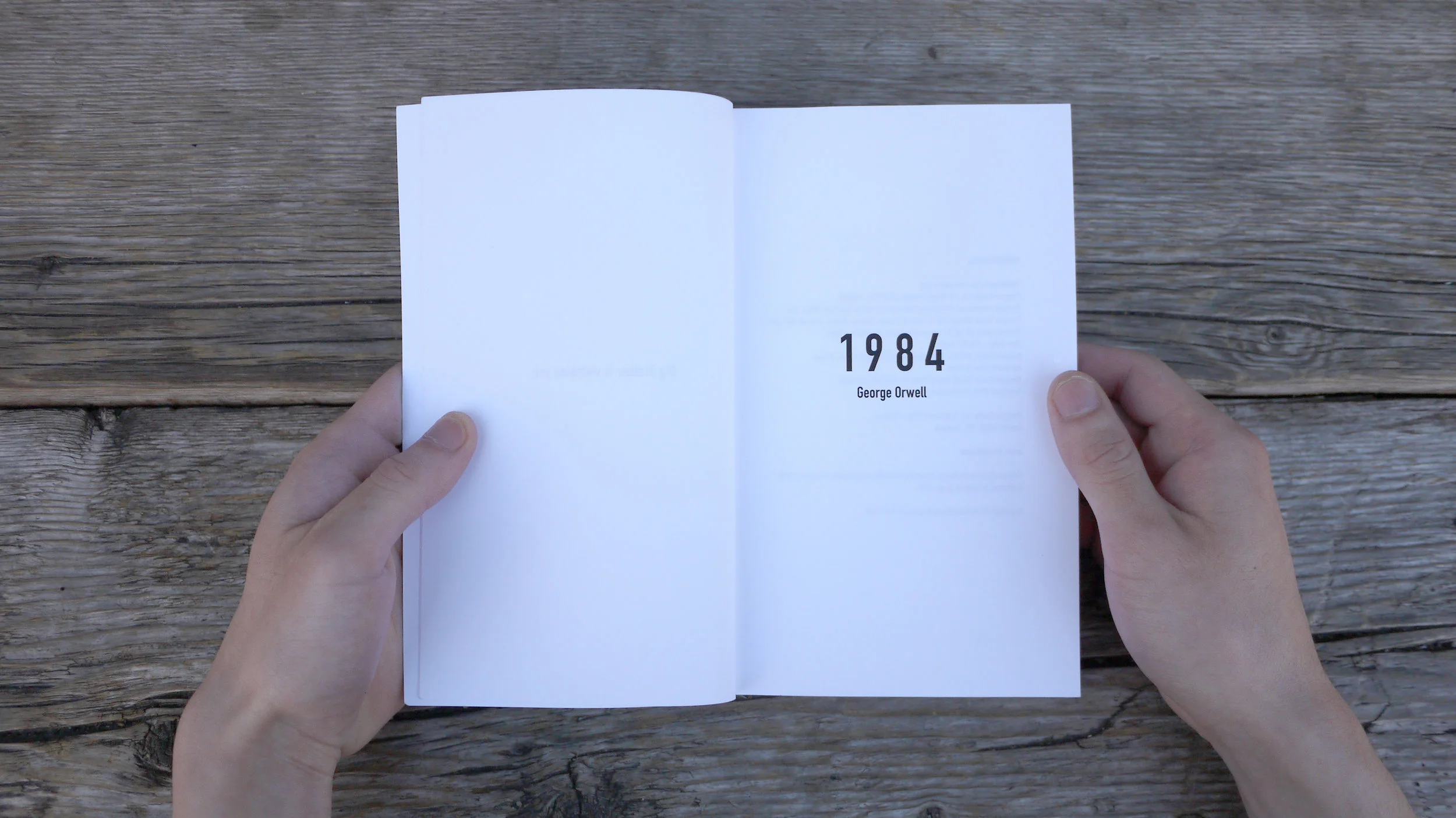 This was a school project of editorial design. The main character's habit of writing diary entries is reflected in this work by the use of white chalk on black brick. The glare of light represents Big Brother's surveillance on the main character. The number is partially erased, suggesting the character's failure to rebound after he is tortured by Big brother and brainwashed by his ideology.