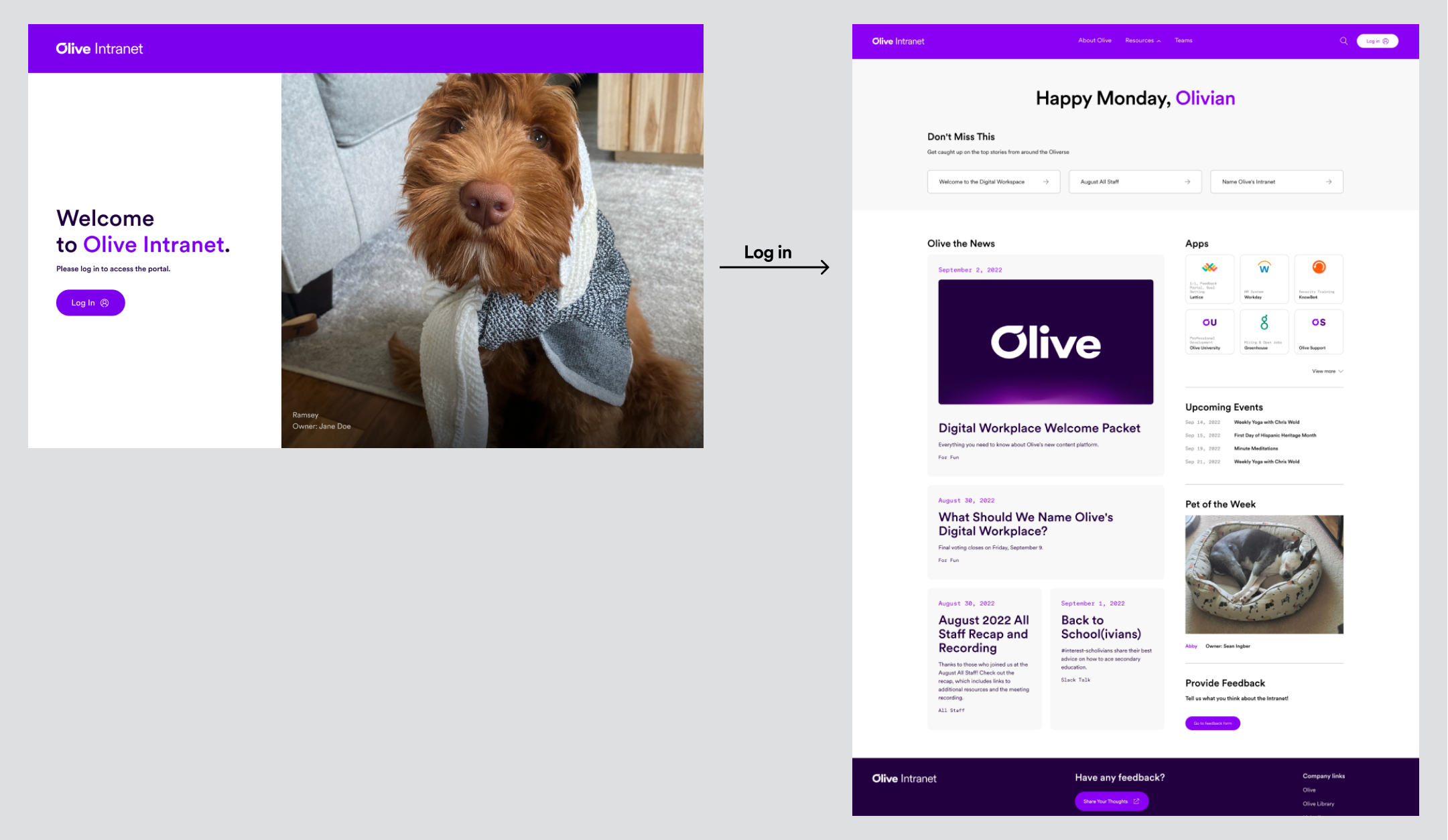 Olive is the automation company for the healthcare system. We’ve asked to build the intranet for Olive employees which is a centralized place to easily find the company information and resources they need. The ask includes: