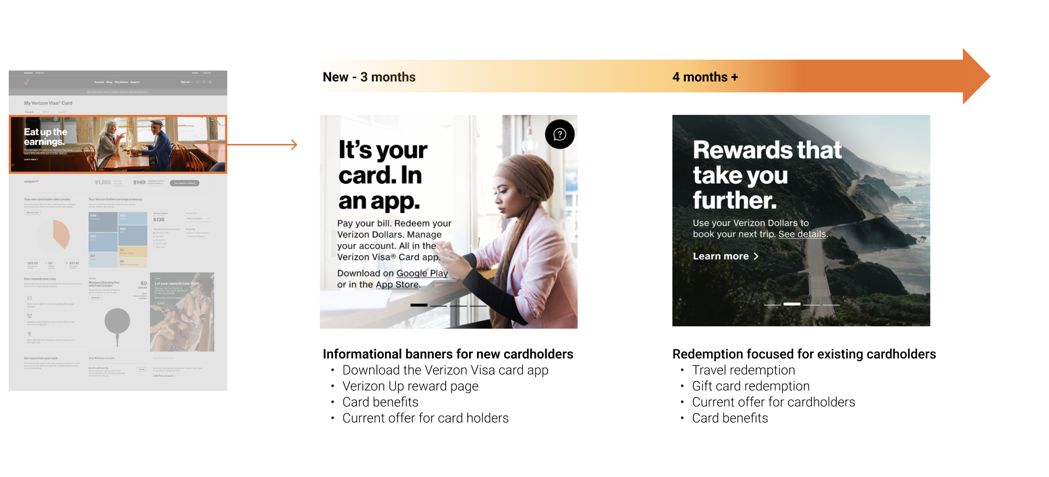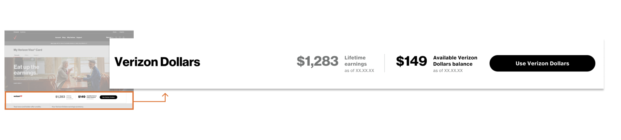 I wanted to show not only the current available balance but also the total earnings as of today to strengthen the connection customers feel with their Verizon Visa card over time.