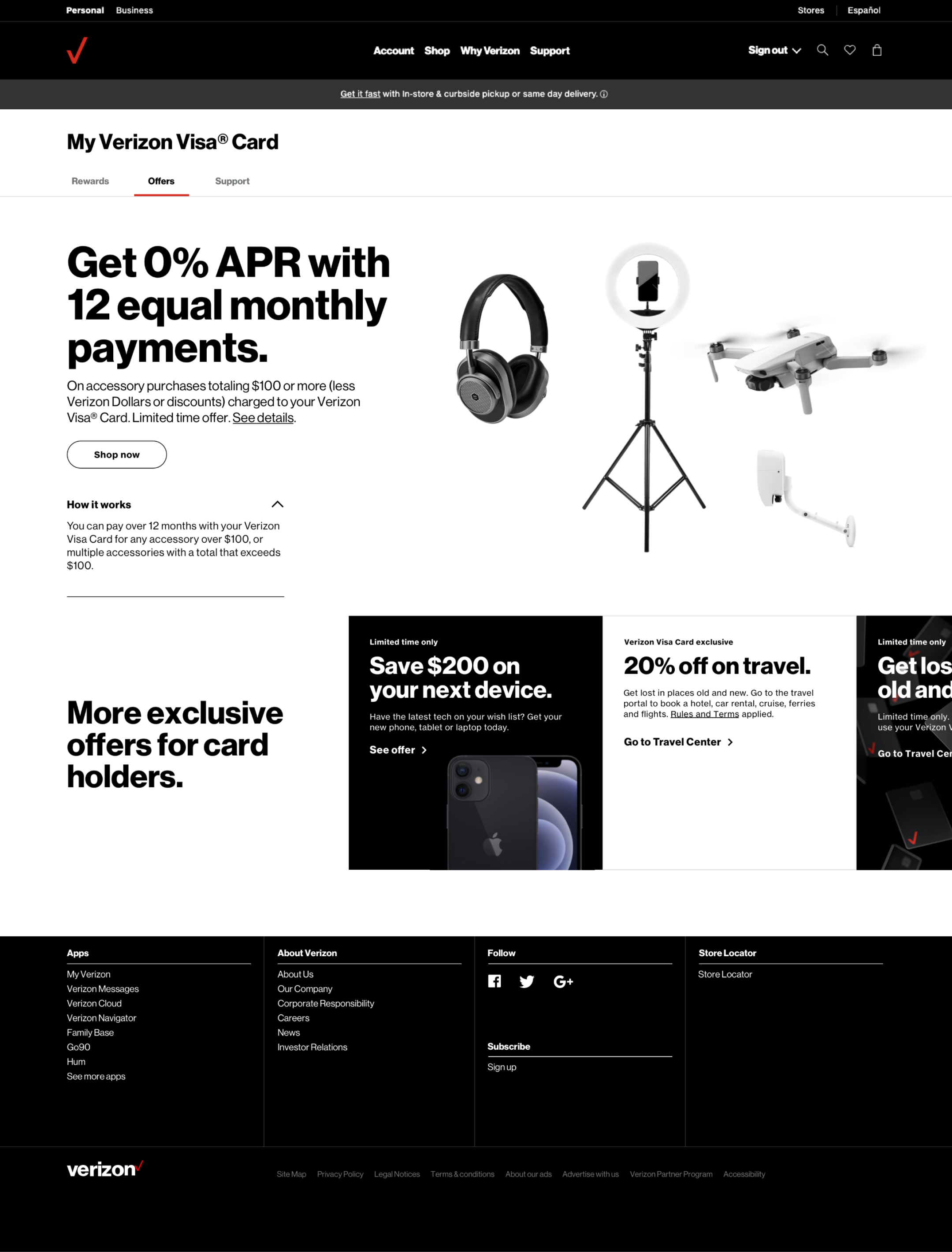 New cardholders will get $100 Verizon Dollars credits as a welcome offer if they pay their Verizon bill(s) using their Verizon Visa card within the first 24 months of being a cardholder. Users can track their new cardholder offer earning states, which will be given throughout 24 consecutive bill cycles, equaling a credit of $4.17 per monthly bill.