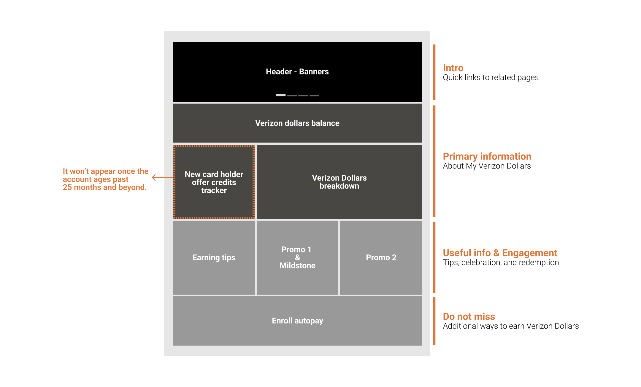 The dashboard is the Info hub for account management, rewards Verizon, and benefit info. The previous version of the dashboard only had minimal functions such as displaying reward balance and benefit info. Our team has been requested to upgrade it to engage cardholders and make the better Verizon Visa Card experience.