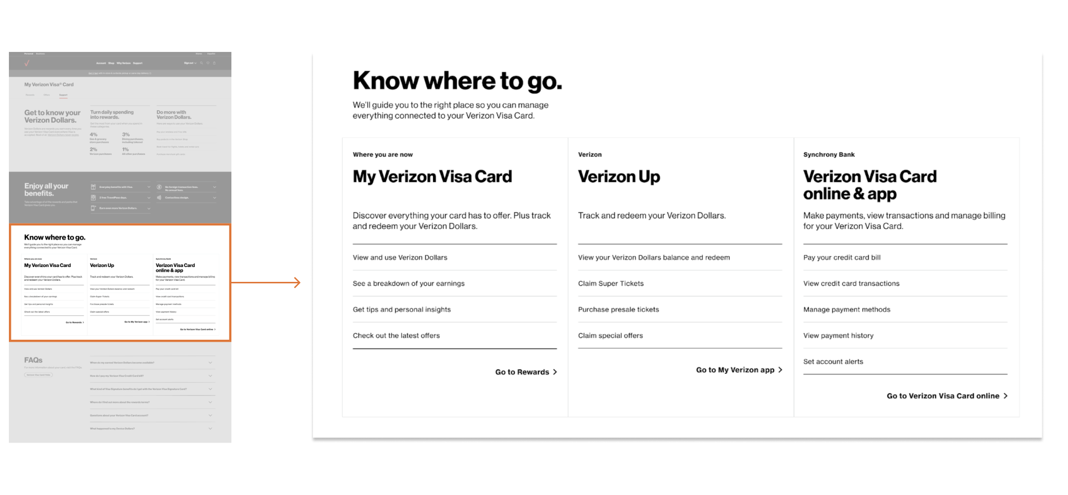 Where to manage my Verizon Visa Card? Where to pay my credit card bill? What’s Verizon Up? Customers might lose their way, especially when they need to pay their card bill on a different platform than the card app. I’ve guided them to the right place for all Verizon Visa Card activities in the support tab.